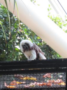 Moody Gardens® also has a Backyard Habitat, a very cool aquarium exhibit that is called Ocean Depth. They also have their own rainforest which really slams because birds fly free in it and you see lots of animals crawling and climbing free in the exhibit – like the lizard, bat and Tamarin that are pictured.