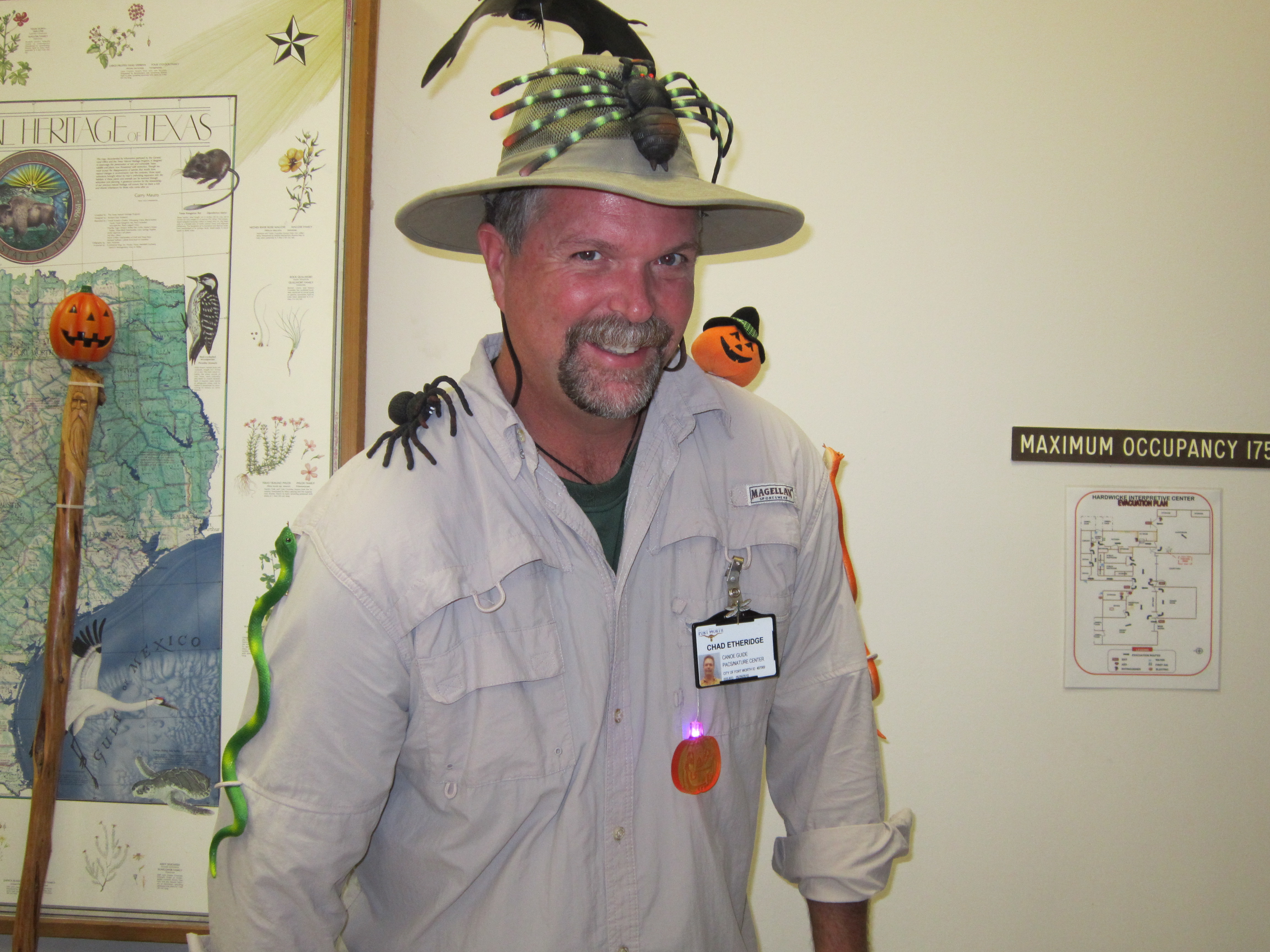 This is a chance to see some of the wildlife they have there, like the owls, snakes and even a tarantula spider!There will be treats there, too. And you can come dressed up in a costume. You can go on short hikes and make a craft to keep.