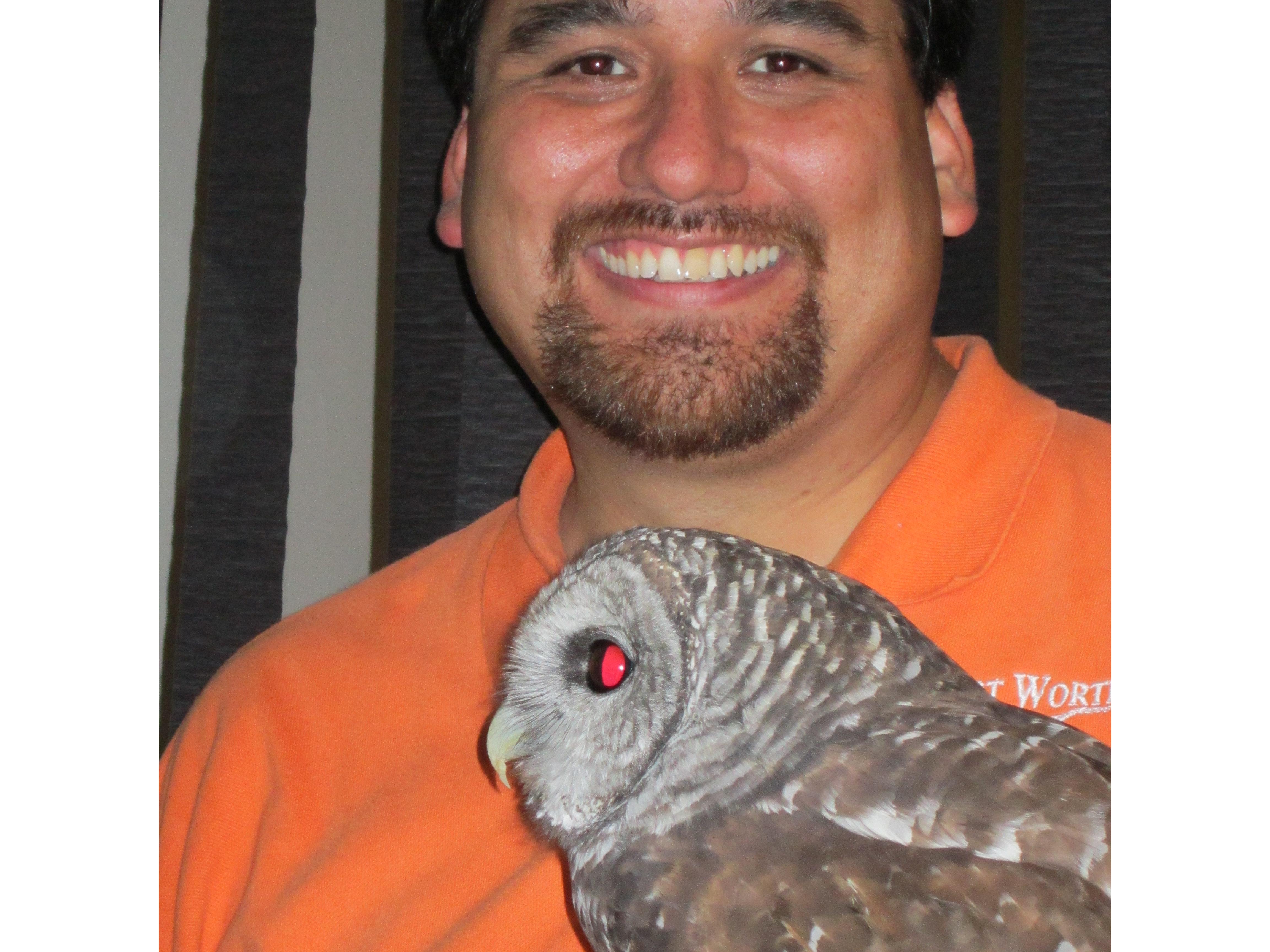 M: I have worked here for five years. I wanted to worked in Texas and be near my family so working at the FWNC&R was really a nice opportunity for me. I have worked in outdoor education for many years including places like Utah and Georgia. I’ve worked a lot with raptor birds (eagles, hawks and falcons). In Savannah I worked with marine life, too.